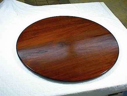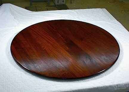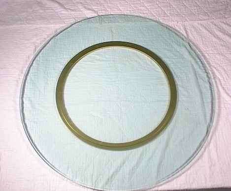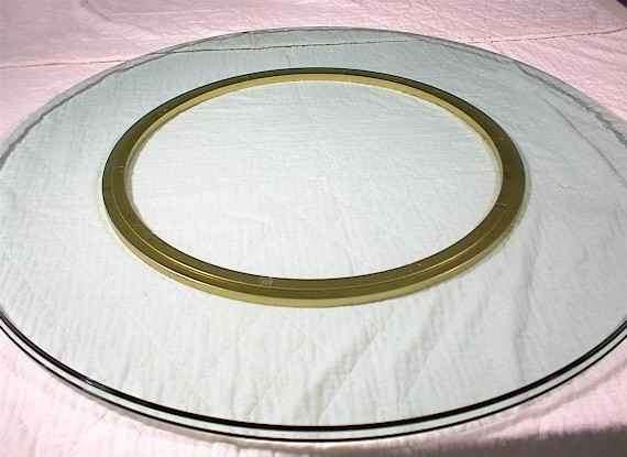 This one is truely a masterpiece. It is a giant 48 inch susan with the Roman Ogee edge. This susan has a 30 inch Premium base that has been plugged and painted with the metallic gold. You can also see the clear plastic spacers that are provided to keep from scratching the glass.