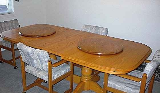 Oak is the wood this company started with. As with most other species, there are several grades. Along with that, there are different species of oak. Examples include Red Oak, Black and White Oak. Different oaks from different areas around the country will add variations to color and graining. We strive to use only Red oak coming from the eastern states. This provideds a consistent color and low mineral content. The minerals are what will cause streaking in the wood. I understand that when you consider one of my lazy susans for your beautiful dining room table, it must be as good a quality as the table it will be displayed on. Other items you must consider are service and timely shipping. Does it annoy you when you hear your order will be shipped in 6 to 8, maybe even 12 weeks? When you pay top dollar for one of my pieces, you are assured of not only a high quality piece of furniture, you will also recieve top quality service. My commitment to you is that in most circumstances lead time will be limited to one week or less from date of order to ship date. I am often asked “What size susan would be good for my table?” Well, if it’s going to be a decorative susan, then it can be any size you like. However, if it’s to be a functional piece, I like to recommend a minimum of 12 to 14 inches of “plate room” all the way around the susan. A good way to see how this would look is to make yourself a circle pattern out of paper. Click here for an easy way to make one. Then place it on your table and arrange some place settings around it. This will give you a very good idea as to how your susan will fit once you recieve it. Custom sizes are available. Simply email me for a speedy quote.