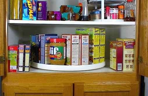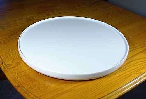 This is the Solid Based Lazy Susan. By solid, I mean that it isn’t hinged, or folding. Unlike the cheap 12 inch plastic ones that you find in the store, this one is a huge 22 inches in diameter. It is designed to fit in your shelving that is a minimum of 22 inches wide and deep. Most lower kitchen cabinets and pantry stands are a standard 22 inches deep. Click here for an easy pattern to be sure that this will fit into your cabinets. Custom sizing is available. Please email for a quote. This Susan arrives to you fully assembled with the edging installed. The edging has a handy raised lip so that your items won’t slide off. This will make your storage space much more effecient, while allowing you very easy access just by spinning.