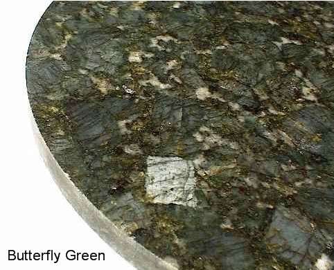 This next one is called Butterfly Green. This sample is 16 inches in diameter. It is a dark green in color and displays very similar irridescent properties as the Blue Pearl does. I have again included extra closeups to give you an idea as to it’s true beauty.