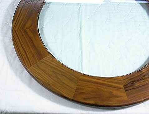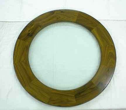 My bordered glass susans utilize 3/8 thick plate glass with a sanded edge. There are a couple of unique points about this style of susan that I would like to point out. First is the clear glass center section. This is very nice in that now you can have a susan that won’t totally obscure your beautiful diningroom table. Secondly is the border ring itself. I offer this in four standard woods, that will blend with many table styles. The border also nicely hides the Premium swivel base at the same time so you don’t even see it through the glass .